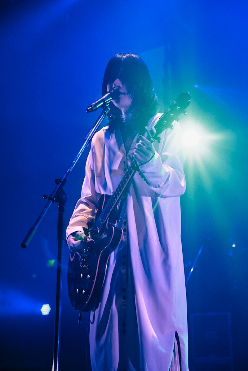 主催者であるKIRITOのバックドロップが掲げられた舞台にて、先攻はUKロックやシューゲイザーをルーツとしながら独自の世界を作り上げている有村竜太朗だ。サポートメンバーのDEMONSTRATIONsは、咲人(G/NIGHTMARE、JAKIGAN MEISTER)、鳥石遼太(B)、高垣良介(Dr)、野村慶一郎(Key&Mani)といった面々。一方の後攻はヘヴィサウンドを武器にした攻撃力を増し続けているKIRITO。サポートメンバーは、海(G/vistlip)、JOHN(G)、Chiyu(B/SLAPSLY)、Hiroki(Dr/C-GATE)。、それぞれのカラーを存分に発揮したパフォーマンスを展開していった。