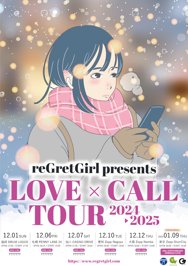 また、同公演内にて<LOVE×CALL TOUR 2024-2025>のツアーファイナル公演の詳細も発表された。すでに発表されていた全国5カ所に加えて、今回新たにZepp DiverCity TOKYOでの公演が発表され、全国6か所を巡るツアーとなる。東京でのツアーファイナルは、reGretGirl結成10周年を記念したワンマン公演だ。