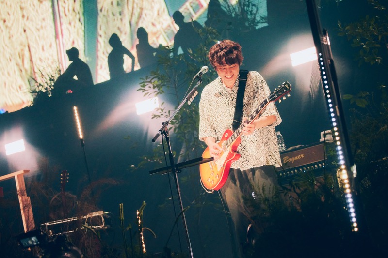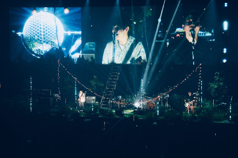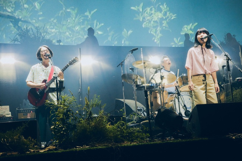 このライブはバンドのパフォーマンスに加え、演出面も非常に秀逸だった。緑の木々が配されたステージセットにはオープンな空気感があり、その後方の高くなったところに後藤が登り、弾き語りをするシーンもあった。彼は「土手なんです、これは。この下は河川敷ね。奇しくも僕、静岡県の島田市出身で、島田高校で…地元では『土手高』と言われてるんですね。学校が土手の脇にあって」と話しながら、そのセット上で、人々のシルエットが行き交う中で「ソラニン」と「ボーイズ&ガールズ」を唄った。それはさまざまな人たち、あらゆる人間の生き方を優しく許容する空間のように思えた。
