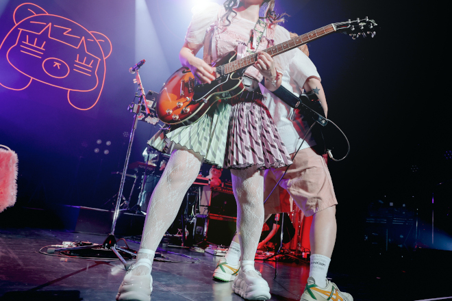 「にゃんにゃんにゃん」では、猫耳としっぽを装着したコレサワが猫じゃらしを持ったひぐちとじゃれるなど、愛らしいパフォーマンスで癒しを届ける。さらに最新作収録の「君のタトゥー」では“みんなも好きに踊って”という呼びかけに応じて、観客が心の赴くままに体を揺らした。