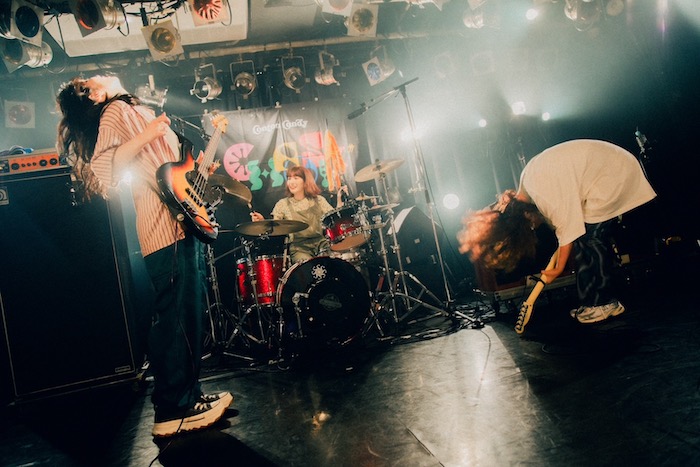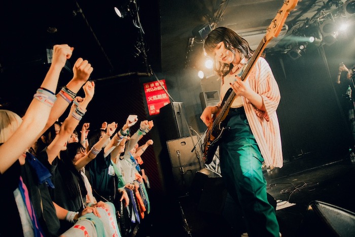 This is LASTがさすがの熱演を繰り広げた後、ハナレグミ「音タイム」をSEに登場した紬衣(Vo, G)、楓華(B, Cho)、彩楓(Dr, Cho)の3人。紬衣が「ここから始まる」という言葉とともにギターをかき鳴らし、歌い始めた1曲目は「好きなものは手のひらの中」だった。バンドを象徴する1曲から始めるといういつもとは少し違うセットリストに、このイベントに託す彼女たちの思いが透けて見えるようだ。そしてその想いに応えるように、フロアでも大きなシンガロングが巻き起こり、O-Crestはいきなりクライマックスのような熱狂に包まれていった。