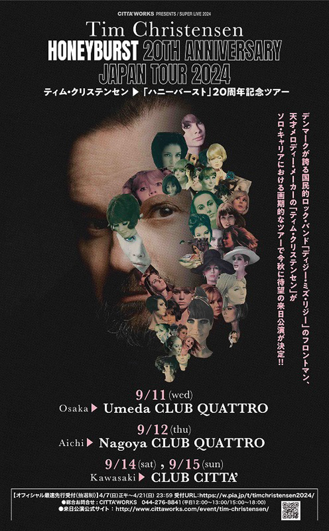 9月11日、大阪にてティム・クリステンセンのジャパン・ツアーが幕を開けた。彼がフロントマンを務めるディジー・ミズ・リジーは、2023年9月に現時点での最新作にあたる『オルター・エコー』に伴うツアーの一環で来日しており、その際の各公演は多くの人たちにより2023年度のベスト・ライヴのひとつに挙げられるほど素晴らしい内容だったが、それからちょうど1年を経て実現を経たソロ名義での今回の公演には、その際とはひと味もふた味も違った感動があった。