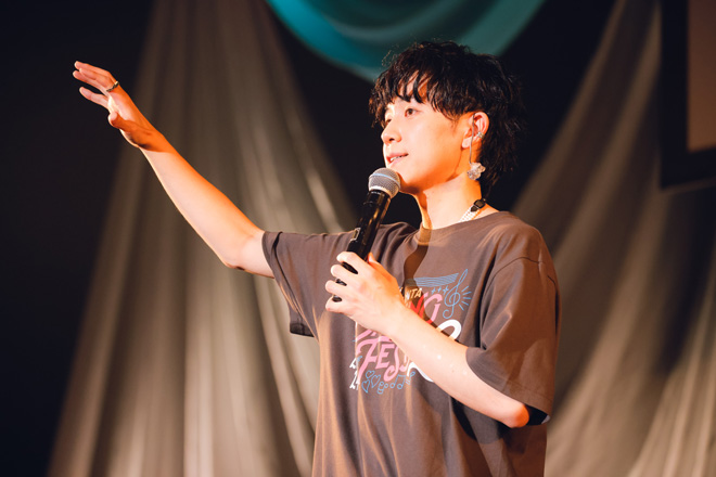 観客から大きな拍手が沸き起こると「毛色が違う曲なので心の切り替えが難しかったのですが、披露する中でみんなの熱量を感じました。嬉しいな」と声を弾ませる。そして「今までのバースデーイベントとは違って、歌唱をメインにお届けしていきます。これからも続々と、いろいろな曲をお届けしていくので、最後の最後まで盛り上がってください」と語気を強めた。