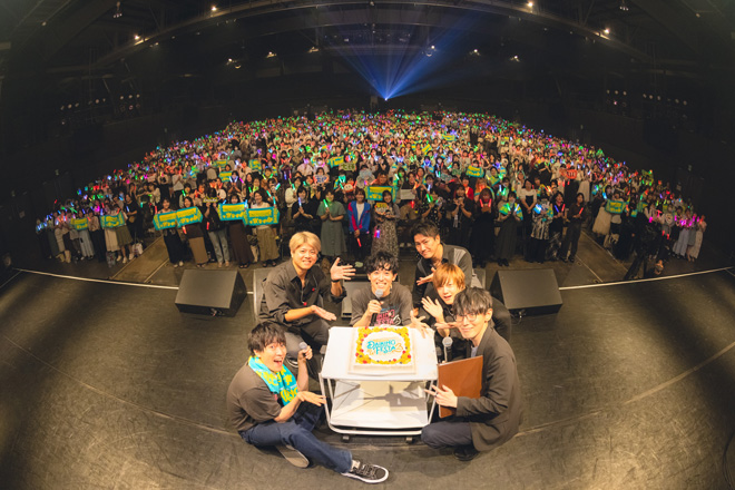 ライブを終えるとあらためて感謝の気持ちを述べ、この日の出演者をステージに招く。縁の下の力持ちとして、本日ステージを支えたマニピュレーター・柳 俊彰もステージに上がり記念撮影タイムに。なお、夜公演では柳がバースデーケーキを持って登場し、山下を驚かせた。