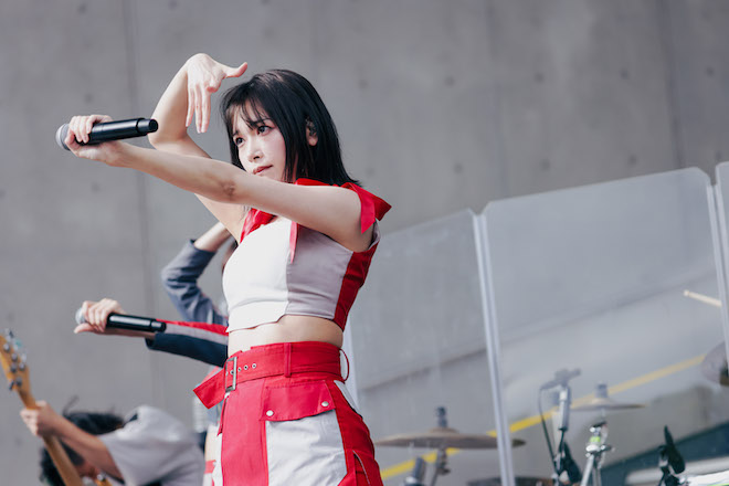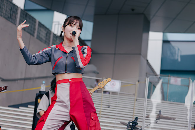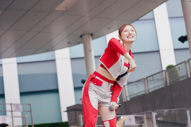 その後「FLAVOR OF BLUE」「ONE STEP BEYOND」と続き、MCへ。ここでは、初めて彼女たちを見るという方たちにも向けて、「レーベル移籍して初めてのリリースなので、このようなフリーライブをやらせていただくことになりました! ぜひPassCodeのライブを堪能して帰ってください!」とコメント。
