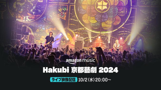 Hakubiが8月10日に開催したライブイベント<京都藝劇 2024>の模様が、10月2日20時よりTwitchのAmazon Music Japan チャンネルにて無料配信される。