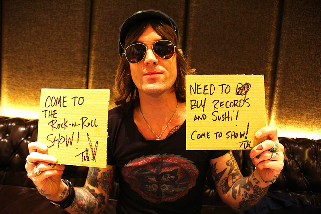 「俺はずっとこの機会を待っていたんだ。多くのロック・ミュージシャンたちが口を揃えて「日本は最高だ!」って言うじゃないか。だから自分でもいつか日本でやりたいと夢見てきた。まだ到着から1日しか経っていないから日本の印象についてあれこれ言うことはできないけど、みんながこぞって日本について絶賛するのはうなずけるし、このツアーが終わったら、今回の体験を自分なりに噛み砕くことになるんだと思う。日本の人たちは全般的に、アメリカ人と比べると落ち着いている印象があるし、その点もすごく俺には合っている気がするな」