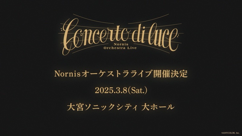 VTuber / バーチャルライバーグループにじさんじ所属の戌亥とこ&町田ちまによる女性ボーカルユニットNornisが、2025年3月8日に大宮ソニックシティでオーケストラライブ<Nornis Orchestra Live「Concerto di luce」>を開催することが発表となった。