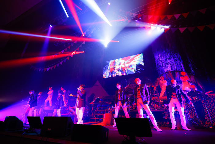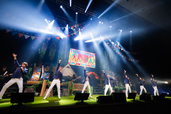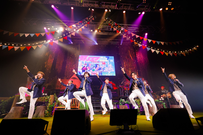 歌唱後のMCでは、「すっごい声出してくれるね!」「凡人に食われるぞ!」と、凡人の勢いに驚く一同。さらに、昨年はリモート出演だった大河も参加し、七人全員でツアーを完走できる喜びもあらわに。去年はカメラ越しだった大河をベタベタと触り、今年は実体があるぞ!」と、六人は感動しきり。凡人もこれには同意で、大歓声と拍手が会場を包みこんだ。