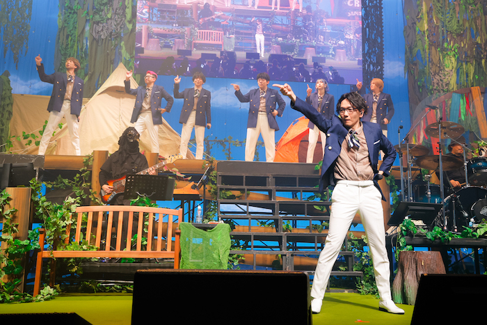 今回のイベントは“フェス”をモチーフにしていて、ジャンボリー(イベント)を一つひとつ巡っていく構成。まずは、各カリスマが主役となる七つのジャンボリーが順番に催され、それぞれコーナーパートと歌唱パートで観客を楽しませた。