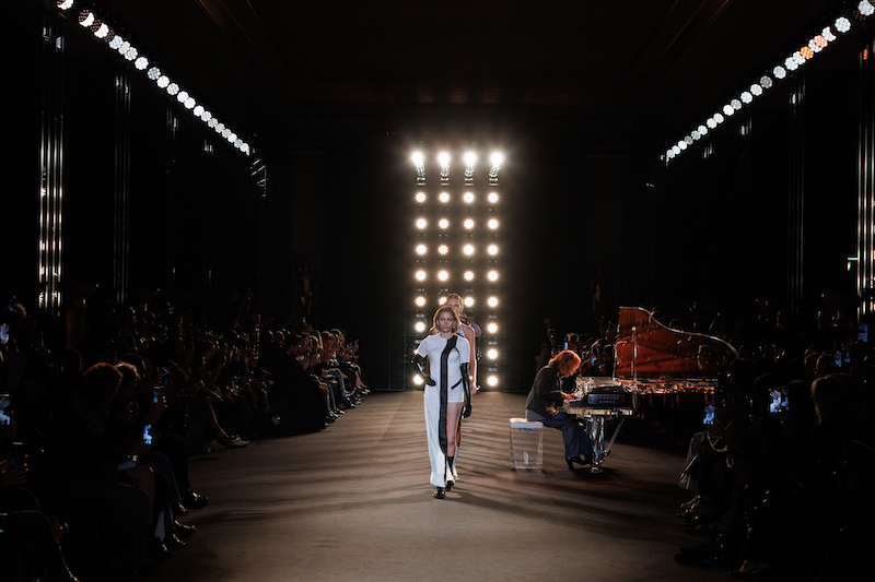 2025年春夏コレクションは、前回のミラノで披露された黒を基調としたスタイルとは異なり、白を基調に、黒、ピスタチオ、パステルレモンといったパステルカラーをアクセントにした軽やかなデザインが特徴。全33ルックが披露され、フェミニンでありながらモダンなスタイルがMAISON YOSHIKI PARISの新たなビジョンを示し、観客を魅了した。