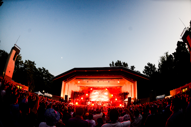 THE BACK HORNが、<『KYO-MEIワンマンライブ』~第五回夕焼け目撃者~>を10月13日(日)に大阪・大阪城音楽堂(大阪野音)で開催した。同タイトルのライブを7月28日に東京・日比谷公園大音楽堂にて開催して以来、約3ヶ月ぶりのワンマンライブとなった今回の公演は、東京と同じく好天に恵まれた。