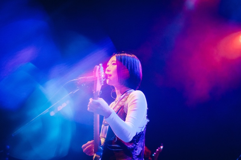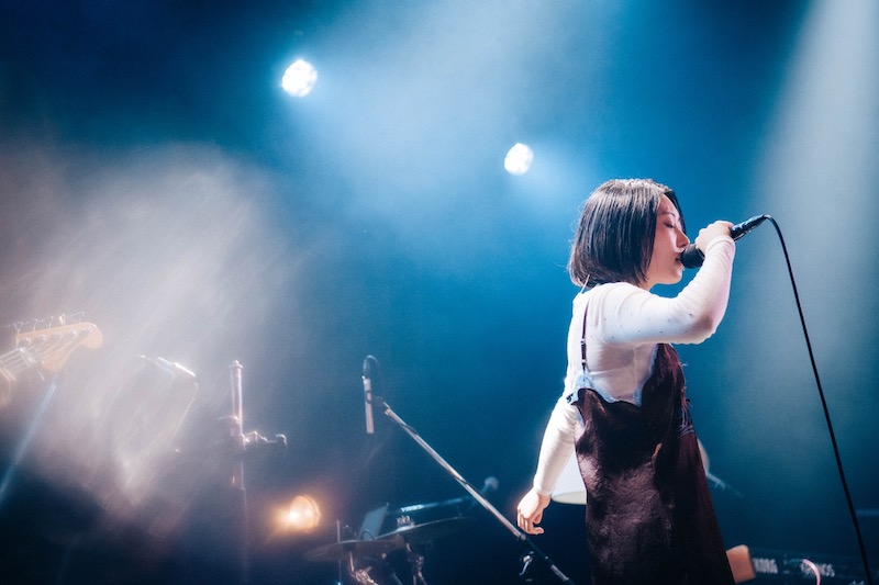 「そろそろ終盤になってきました。わたしは普段、家でひとりで曲を作っているんですけど。曲を作っている時って基本孤独なんです。書きたいことを自分と向き合って。こうやってみんなの前で歌わせてもらえる機会ができたことで、自分ひとりの言葉だと思っていたことが共鳴している感覚になって。ひとりじゃないんだと思うことができて幸せです。今日という日は1年間でどれだけ変われたかを記念する日。これからも変わり続けていきたいです。また、会いにきてください!」と挨拶。音像のシャワーを浴びるかのような解像度高い特異なポップソング「Transpose」へ。高揚感は上昇し続け、ラストへ向けて拡がっていく重厚なゴスペル展開が胸熱だった。