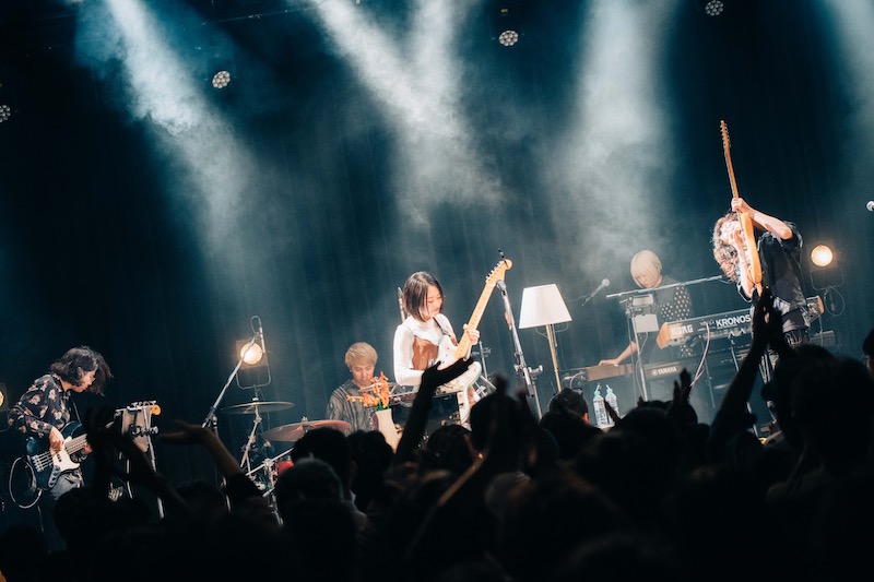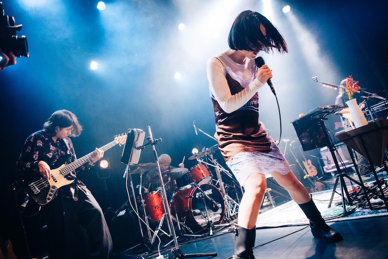 「もう秋になってしまったんですけど、夏の曲をやります!」と、せつなくも狂おしいギターポップチューン「ブルーハワイ」、さらに「あしたてんき」と、ライブでの人気曲が続いていく。自宅へ籠る歌を、たくさんのオーディエンスへ向けて歌い放つ、絵も言われぬ開放感。繊細な青春期の心の機微が、赤裸々に昇華されていく。