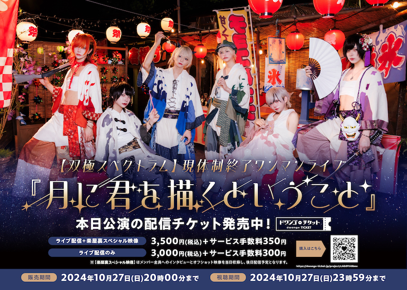双極スペクトラムによる現体制終了ワンマン<月に君を描くということ>が9月27日、恵比寿ガーデンホールにて開催された。グループ結成当初から歩んできた、ゆうが卒業。現体制での双極スペクトラムが見られる最後のライブだ。