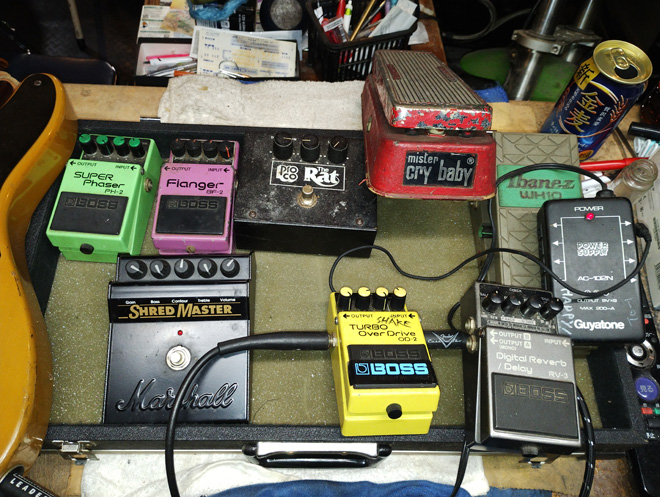 【俺の楽器・私の愛機】017「アンプ沼の成れの果て」(編集部編)、この投稿を御覧いただいての投稿ですね。いやいや同じ穴の狢がいたいた。あの頃のエフェクター群、いいですねぇ。具合のいい歪み系数台とワウ、そしてフェイザーとフランジャーにディレイ・リバーブ。そこにパワーサプライ。最後に金麦。必要にして十分。まさにこの感じね。OD-2の筐体にSHAKEとマジックで欠かれているのは、もしかしてレッド・ウォーリアーズのシャケのことか?だよね。だったらYAMAHA F100-212も欲しくなっちゃうけどな。シュレッドマスターとラージボックスラット、いいっすね。マクソンの1Uデジタルディレイも懐かしすぎて遠い目になりました。(BARKS 烏丸哲也)