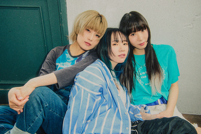 アオ 左から百胡(B)、ざらめ(Vo, G)、maki(Dr)