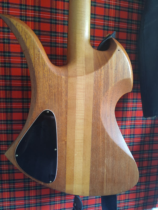 見た目は全塗装剥がしのオイルフィニッシュ。ネックは複合で強度を上げたスルーネックです。中身が見えたことで「これ定価で9万5千円だったのって、フェルナンデス凄くね?」と思えるクオリティです。