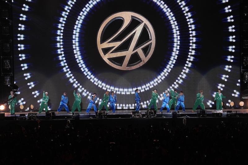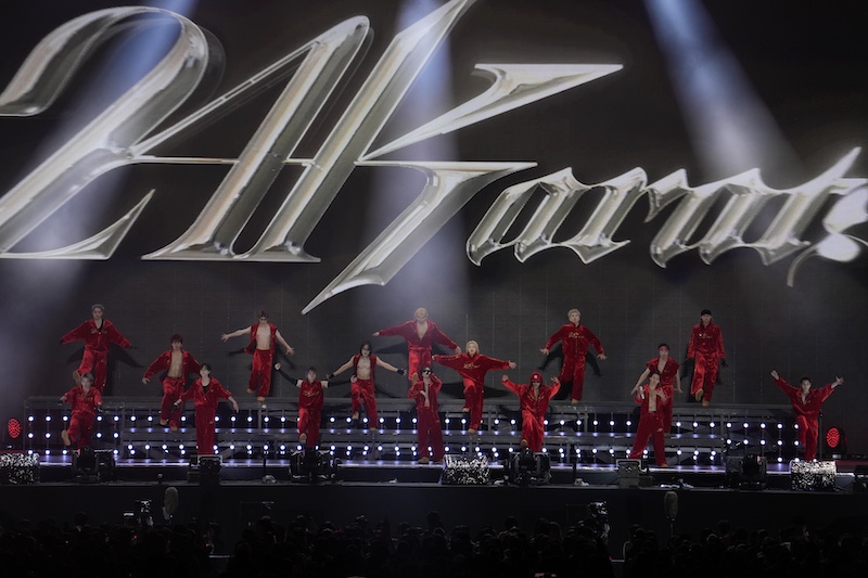が、宴はまだまだ終わらない。年末イベントの4日間開催やGENERATIONSの新プロジェクト、川村壱馬のソロデビュー、2025年のTHE RAMPAGEライブツアー、EXILEのライブツアーと、5個の特大の告知が続いた後、アンコールを受けて始まったのはEXILE TRIBEの伝統と言える“24karats”シリーズの熱いメドレーだ。今年新たにTHE RAMPAGEが正式継承しリリースした「24karats GOLD GENESIS」から始まりJr.EXILEによる「24karats -type Jr.EX-」、そして各組全員がステージに揃い、三代目JSBとGENERATIONSが躍動する「24karats STAY GOLD」からEXILEのボーカル3人が届ける「24karats TRIBE OF GOLD」まで、お馴染みの火炎放出とともに全身全霊のパフォーマンスを届けた。