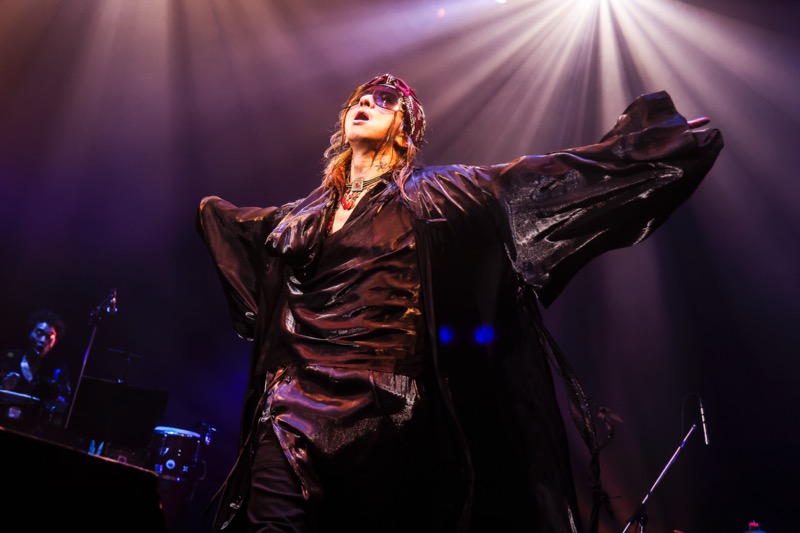 清春がアコースティックギターの音色を響かせながら歌った「RUBY」「Masquerade」「流星」の流れも絶品。孤高の詩人のごとき佇まいと、甘く切ないメロディーが観客一人ひとりの心の奥深くに刻まれるようだった。