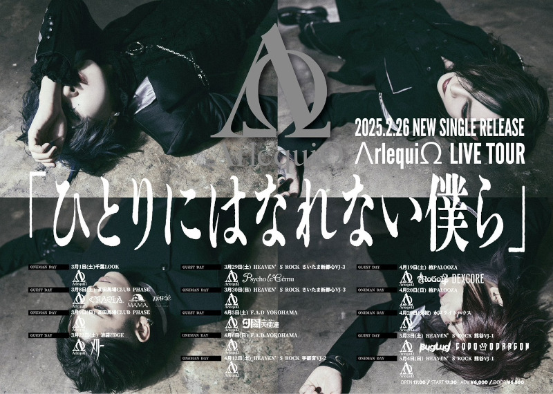 ニューシングルは2025年2月26日にリリースされる予定だ。同シングルのフォローアップとして3月から開催される<ΛrlequiΩ LIVE TOUR「ひとりにはなれない僕ら」>は、会場ごとに<ONEMAN DAY><GUEST DAY>のテーマを設定。<GUEST DAY>はそれぞれの会場に対バンを迎えて行われる。