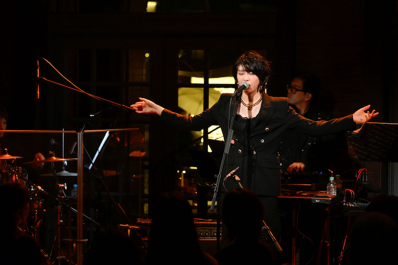 さらに、今度はアコギを携え、BLUE NOTE PLACEの立地にちなんで用意した未発表曲「恵比寿ブラックホール」、Little Black Dressとしてのキャリアのスタートを飾った記念すべきデビュー曲「双六」を披露。グルーヴィなバンドサウンドとともに、彼女が持つ翳りやフォーキーさ、歌謡ロックのテイストも顔を出す。