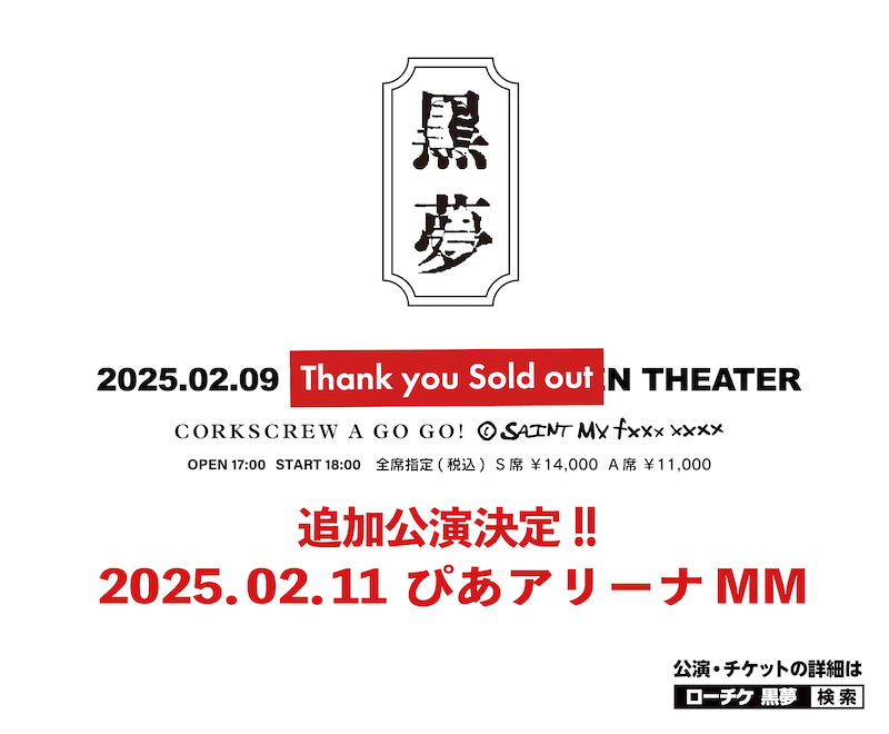 黒夢、10年振り再始動公演チケット即完売により追加公演決定