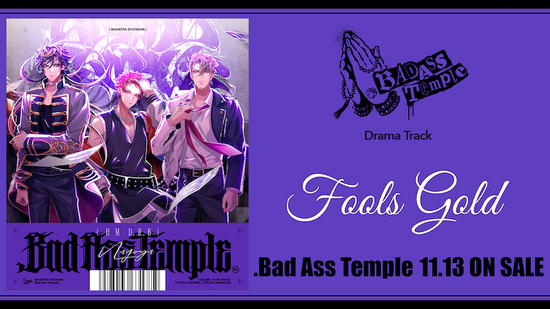 新作CDを7か月連続でリリース中の『ヒプノシスマイク –Division Rap Battle-』。11月13日発売のナゴヤ・ディビジョン『.Bad Ass Temple』に収録されている新作ドラマトラック「Fools Gold」の一部がヒプノシスマイク公式YouTubeチャンネルで公開となった。