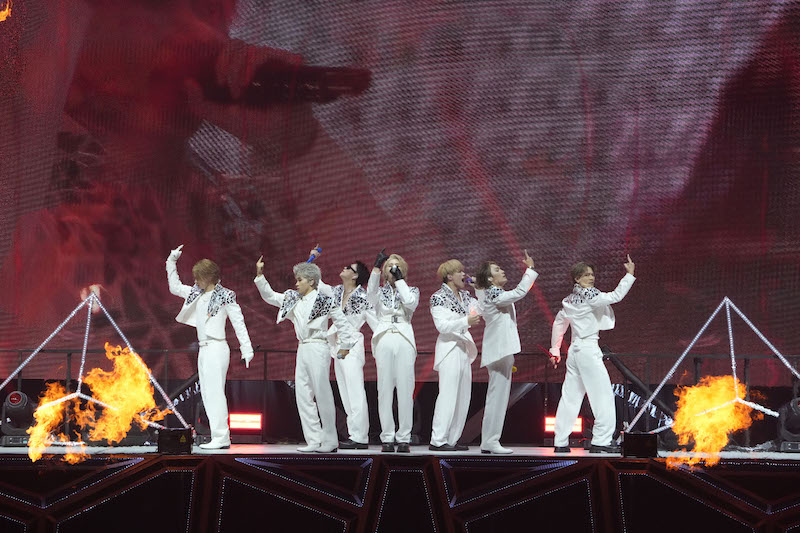 7人の個性が光る圧巻のソロパフォーマンスを披露し、「PASION」ではBALLY’Sと一緒に何度も何度もジャンプを繰り返して「やり過ぎやな(笑)」と笑い合うなどリラックスした表情も見られたアンコール。メンバーを代表し、日髙は「アリーナツアー、ドームツアー、ワールドツアー、そしてワールドスタジアムツアーだって本気で叶えたいと思っている。夢を声に出すことで叶えていけるというパワーを信じて、今日ここで約束したい。全てのステージで皆さんの笑顔を見渡せるように、新たな夢に向かって頑張っていきます!」と挨拶し、7人は心を込めてラストナンバーとなる「HANDS UP」を披露した。