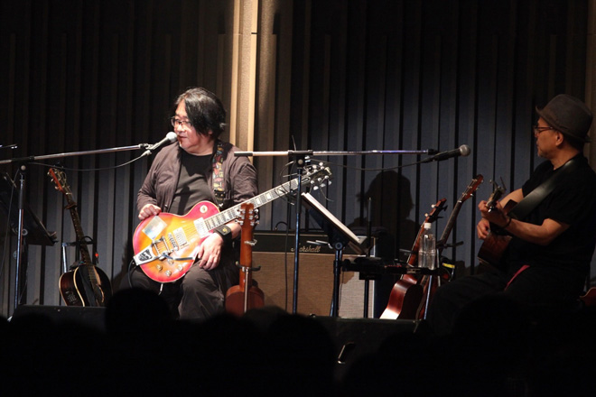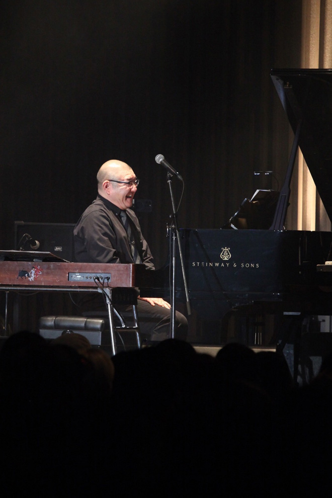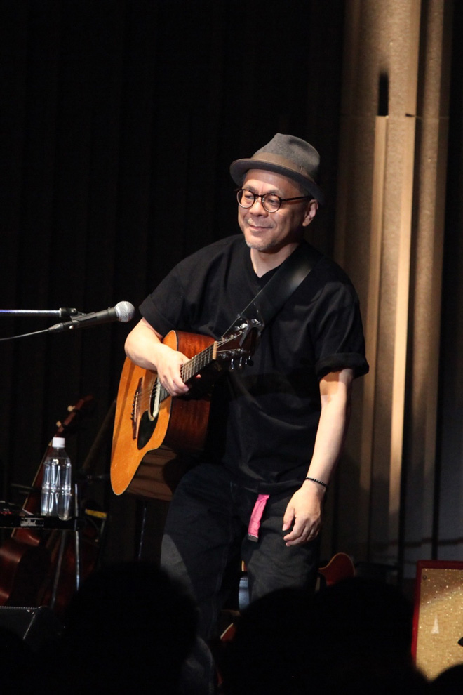 ここで、サポートメンバーの3人、ピアノ・オルガンの浦清英、ギター・ゴムベース・ギタレレの中村修司、ギターでありプロデューサーの松岡モトキが紹介された。話題は彼らも制作に参加した矢野のニューアルバム『愛のしかた』へと移り、前回の20周年ライブから今作の制作に至るまでの経緯について語られた。