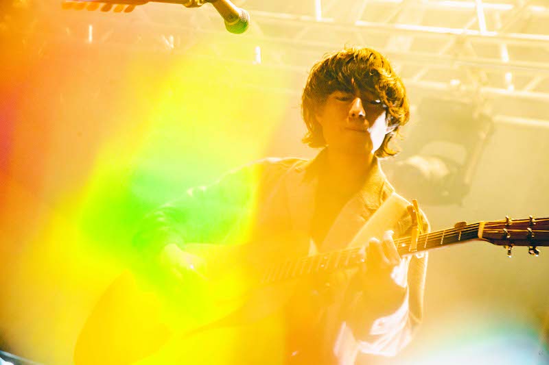 そしてこの日のライブでは、その包容力だけではなく、バンドの繊細で孤独な一面も覗かせた。夕焼けを思わせるオレンジ色にステージを染め上げた「フランネル」から、セットリストは内省的な楽曲にフォーカスを合わせていく。叶わない思いを綴るバラード「虹彩」の歌い出しでは暗闇の中で武市のみがスポットライトに照らされ、その心情を密やかに打ち明けるようにメロディが紡がれた。続く「ゆらぎ」は武市の弾き語りに近い構成の楽曲だ。しかし、ディレイを用いて波紋が広がっていく井上雄斗(G, Cho)のギターフレーズ、武市の歌声に彩りを添える髙橋涼馬(B, Cho)のコーラス、感情のざわめきを音に変えたような坂東のシンバルロールが加わることで、4人組のバンドだからこそ具現化できる寂寞感を表現していたのが印象的だった。