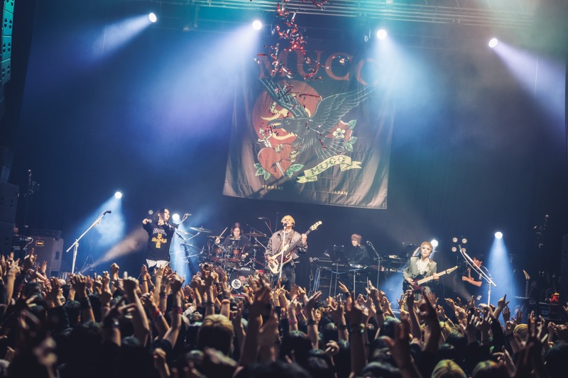愛すべきいじられキャラであることを自覚しているYUKKEは、前日に引き続きその役割を全うしていたとも言えるが、気付けば3人のグルーヴ感ばっちりな流麗トークは終始オーディエンスの笑いを誘い、取材で現場に入っていた筆者も、つい仕事を忘れて普通に何度も笑ってしまったほど。やはり、結成27周年ともなるとトークの場面でもメンバー間における息の合い方は伊達ではない。初のトークライヴというには、かなりの熟練ワザに近いしゃべりを聞かせてくれたMUCCは流石だ。