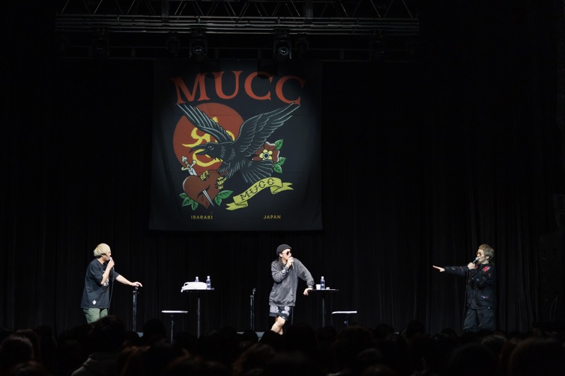とはいえ、そこは結成27周年のMUCCだけあって基本的にこの場ではフリートークが中心で、3人は長年培ってきた阿吽の呼吸とも言うべき絶妙なやりとりを連発していくことになったのだから恐れ入る。