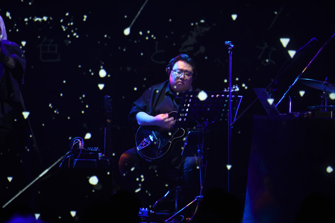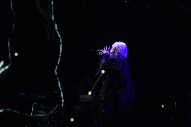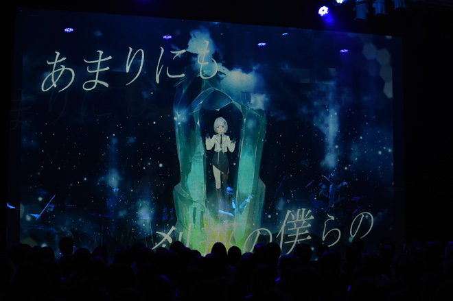 今回初の試みとなるステージ前面の透過スクリーンによる演出は、まるでメンバーが未来と古代の狭間に存在しているようにも見える。そこには幻想的な映像とともに語られる方舟のメトシェラの物語、そして数々の楽曲映像が映し出されていく。