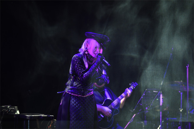 続いて登場したのは、黒のドレスに映える金色の髪の安次嶺希和子。はじめに披露されたのは「探し人の紡ぎ歌」。リリース当時から数多くのグリムノーツファンを魅了したこの楽曲が本ライブで甦り、思わず涙が出た観客も多いことだろう。そして「光あれ」が始まると空気は一気に変わり、安次嶺の美しくも迫力のある高音で会場はどんどん熱気を帯びていく。