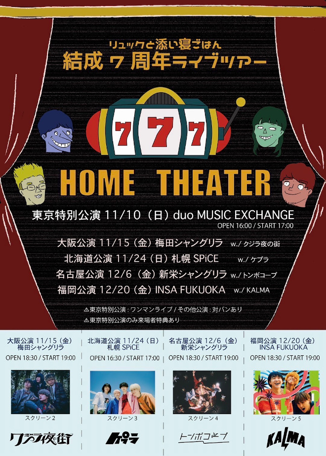 そして、現在は<結成7周年ライブツアー“home theater”>を開催中のリュックと添い寝ごはんだが、2025年3月7日(金)には、自身初となるZeppワンマンライブ<Zepp Oneman LIVE“満漢全席”>を開催する。