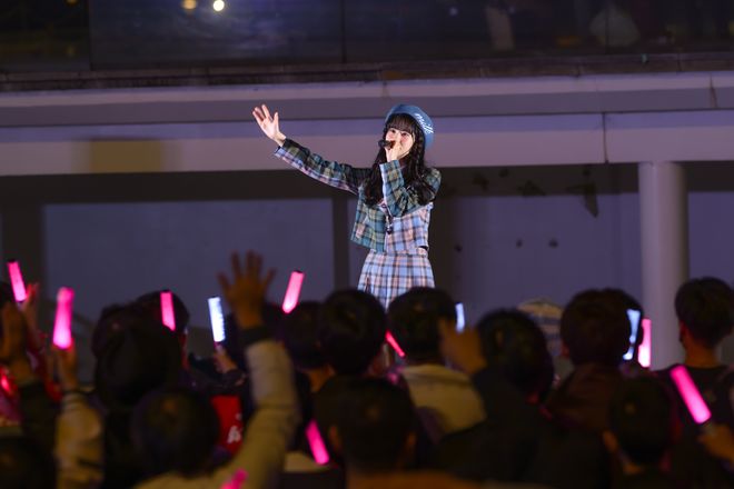 直後のMCで「最後のセリフは自分で言おうと思っていたんですけど、ここ最近リリースイベントをやっていて、そのイベント前に、私が“まだ見ない”と言って、みんなが“未来に行こうー!”って応えるコール&レスポンスが定番化していたので、ついついやってしまいました(笑)。80デシベルを超えてしまったら、すみません!」と事情を説明。今後のリリイベでもミニライブはあるので、歌うのか歌わないのか、ファンの瞬発力が試されそうだ。