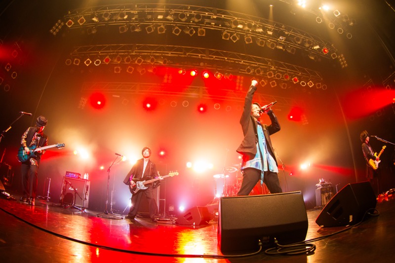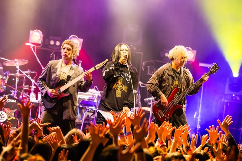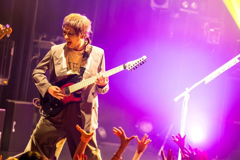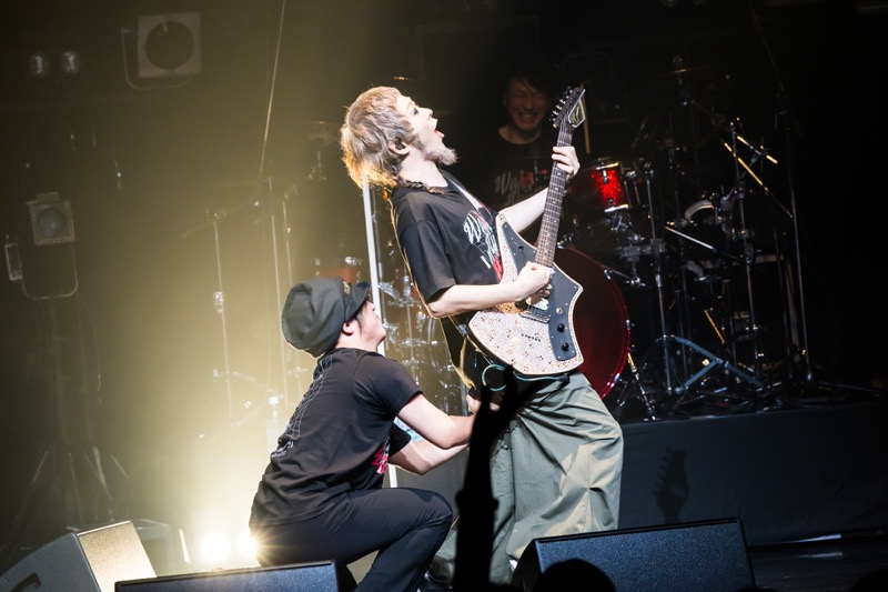 「さすがのステージ」と、足を止めることなく活動を続ける旧友MUCCを讃え、「どういう奴らがどういう音を鳴らしているか、できるだけたくさん届けたい」と意欲を燃やし、まずは「火花」へ。2023年、再始動とともに活動を発表した際に披露された新曲は、武道館へ向けて燃やし尽くすという彼らの意志表明でもある。さらに「Blood vessel」「ASIAN「noir」GENERATION」と続け、いい意味でつかみどころのない彼らの側面を見せつけた。