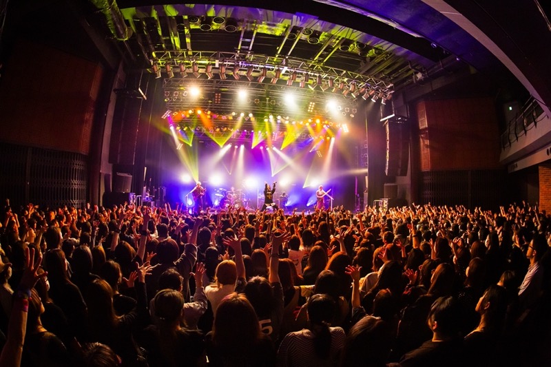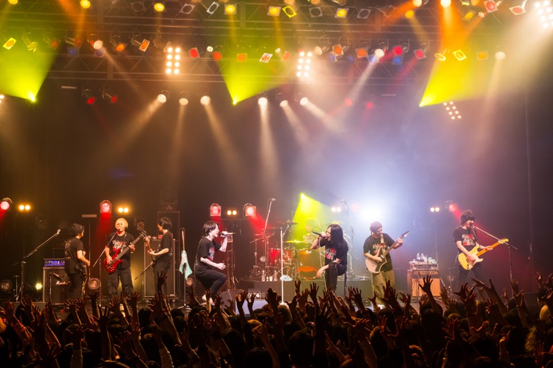 喧々諤々、相談の結果、とうとうステージ中央に、カンチョーをする貮方とされるミヤが並び、照明を含め、イントロから手順を確認するという、真面目なんだかフザけているんだかよくわからない展開に。けれども、いい歳をしたバンドマンが、子どものようにバカ騒ぎをしている様子は、観ている者を無条件にハッピーにしてくれる。会場に集まったファンにとっては、ある種の癒しになったことだろう。