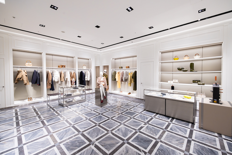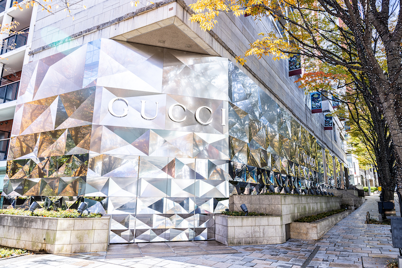 ポリゴン状パネルのエクステリアが美しいこの店舗は、グッチの最新のデザインが施された内装となっており、店内は白を基調とし、約500㎡の広々としたフロアに使用されたイタリアの大理石や、メイド・イン・イタリーのファニチャーにより、グッチのプロダクトが一層引き立たつすっきりとした美しい空間となっている。