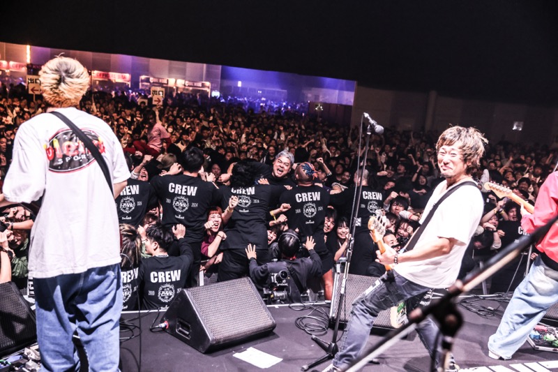 「めっちゃ楽しいわ。みんなのおかげです」とクニタケが観客へ感謝を伝え、「思い出はなくなることないんだ」と語ってからはラストへ向けての3タテ。このステージに集結したヤツならついてこれるに違いない、というスタンスから、この日を忘れないという約束を観客と交わしていった「HELLO GOODBYE」、檄を飛ばすように投下した「GO STRAIGHT」、締めくくりには「青春はオレたちが終わらせない!」と大声で叫び、さらにギアを上げて叩きつけた「YOUTH」。魂を削り取ってぶちまけるようなダイナミズムにも溢れ、揺れに揺れるフロア。隅から隅まで情熱がとめどなく溢れる圧巻のライヴだった。