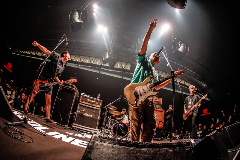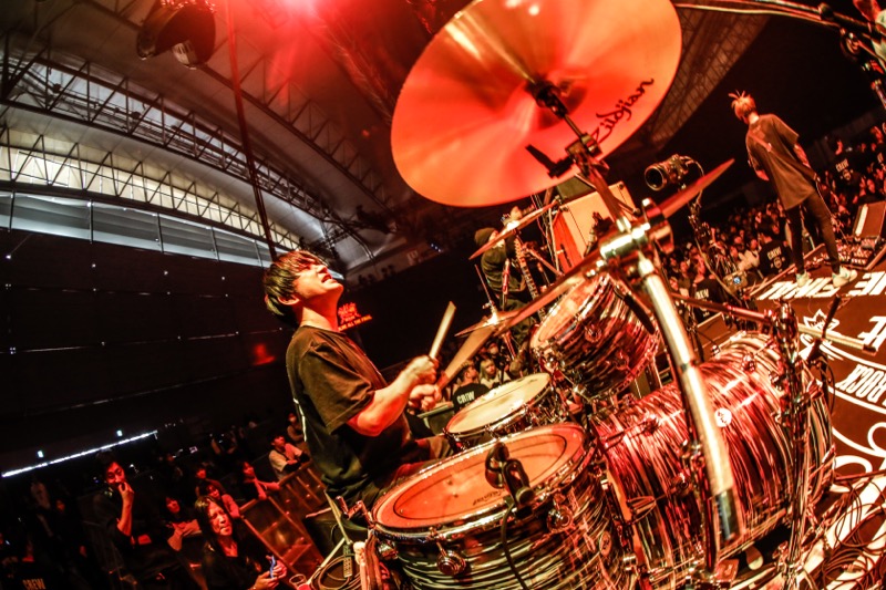 そう北畑が声を出しながら突入したのは「最高新記憶」。常に最高のもので上書きしていこう、という前向きな想いを表現した歌だ。突き刺さる言葉の数々は、オーディエンスをどんどん覚醒させていった。コブシを振り上げ、北畑と共に叫ぶように歌うオーディエンスの姿が会場に広がっていく。メッセージ性の強い歌詞を歌いながら自分自身の心に響かせ、フロアにもエネルギッシュで強力なグルーヴが生まれ、波のようにオーディエンスはうねり続けた。最高の景色を見ながら笑顔をにじませるbachoの4人。彼らにとっても<REDLINE>で最高新記憶を記すことになったと思う。