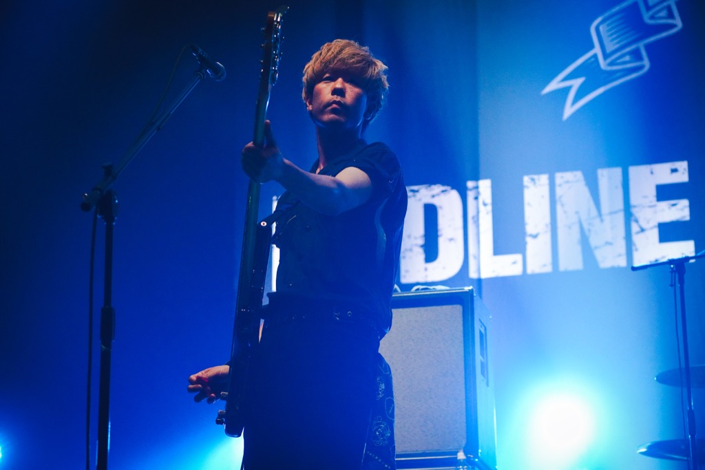 「<REDLINE>、元気ですか? 15年の歴史にとうとう終止符が打たれます。<REDLINE>に誘ってもらえてスズキさん(主催者)には感謝です!」と述べ、さらに「REDLINEって、テンションがブチ上がっちゃって、これ以上行っちゃいけないラインのこと。今日は最後だから、それを超えちゃうよね? 40秒のショート・チューンやるぜ!」と曲紹介を挟み、会場限定CD『CELLS』収録の「FAITH」を披露。メロディックの魅力を濃縮還元した音色に圧倒されつつ、その加速っぷりを「MESSAGE」でも継続させて走り続ける。