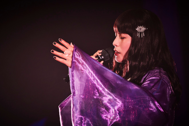 初日公演では、ニューEP『響宴』の収録曲を初披露。LITTLE(KICK THE KAN CREW)が手がけたタイトル曲「響宴」では、会場全体に森の香りのようなフレグランスが広がる中で、祈るように語るラップを繰り広げたかと思えば、「紫陽花」ではドラマチックに歌い上げながらも、和傘を手に、パフォーマーと見つめ合い、目を逸らし、やがて別れ離れになっていく歌詞の世界観を演劇的にも表現。聴覚と視覚だけではなく、嗅覚も刺激して、イメージを膨らませる演出が施されており、代表作となった名バラード「月のしずく」をはじめとした彼女の楽曲に対する思い出に加えて、彼女が出演してきた映画やドラマを見ていた時代にもそれぞれが思いを巡らせることのできるコンサートとなっており、“演じること”と“歌うこと”の共存共栄を果たしたステージに客席からは盛大な拍手と歓声が送られていた。