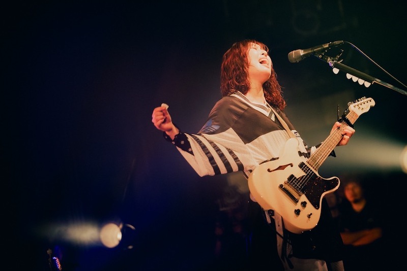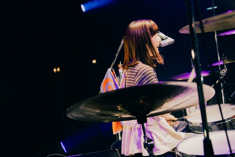 続けて飛び出したのが、「私はみんなとロックスターを目指します」という宣言だ。その言葉で3人とオーディエンスの気持ちがひとつになり、全員で拳を突き上げながら、「ロングスカートは靡いて」をアカペラで大合唱。フロアのクラップがここまで以上に大きくなる。そのままアルバム『melt pop』の中でもっともパンクな「爪」へ。彩楓の2ビートに、紬衣の「かかってこい!」というシャウトが乗っかる。そこからつなげた「102号室」は、ここに集まった人全員の感情を掬い取って、掻き回して、どこか遠くへと放り投げてくれるような演奏だった。