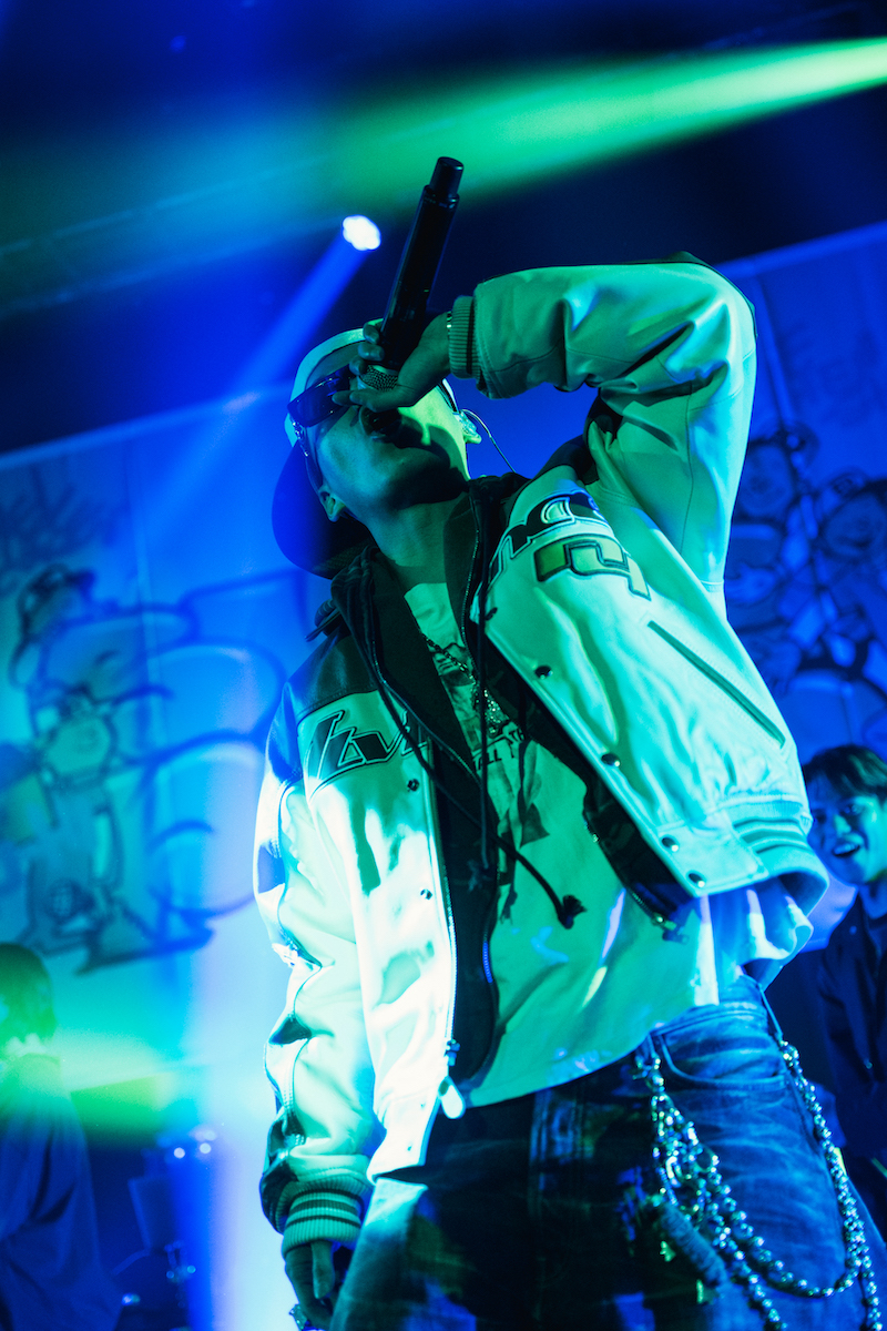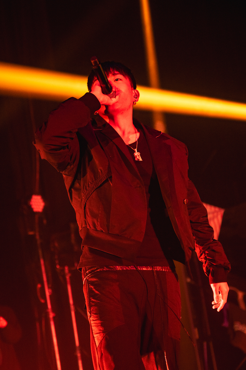 SKY-HI「何様」は、ぼくのりりっくのぼうよみのパートを、この日はREIKOが声を響かせた。そして「Turn Up」でSKY-HIの圧倒的なラップスキルと、《サクセス》を一つずつ成し遂げているからこそ帯びる説得力で、日本が誇るラッパー&ボスとしての存在感を見せつけながら会場の温度をピークへと持っていったところで、CHANGMOを呼び込んで「Selfmade Orange」へとバトンパス。そしてSKY-HI × Novel Core × CHANGMO曲「Zoom」をライブ初披露。CHANGMOが自身のパートを取るたびに、彼のラップを生で浴びられる貴重な瞬間に歓声が湧いていた。