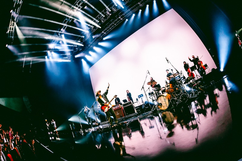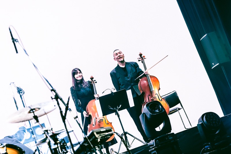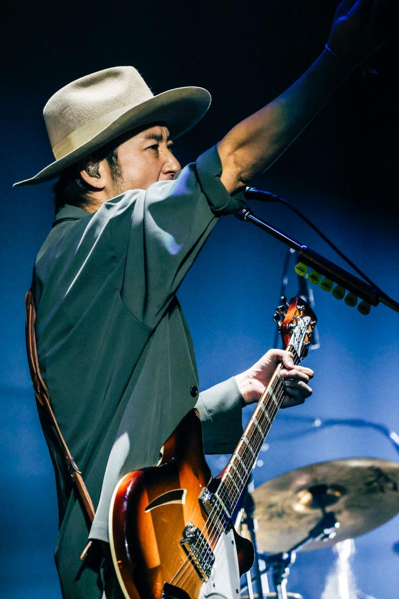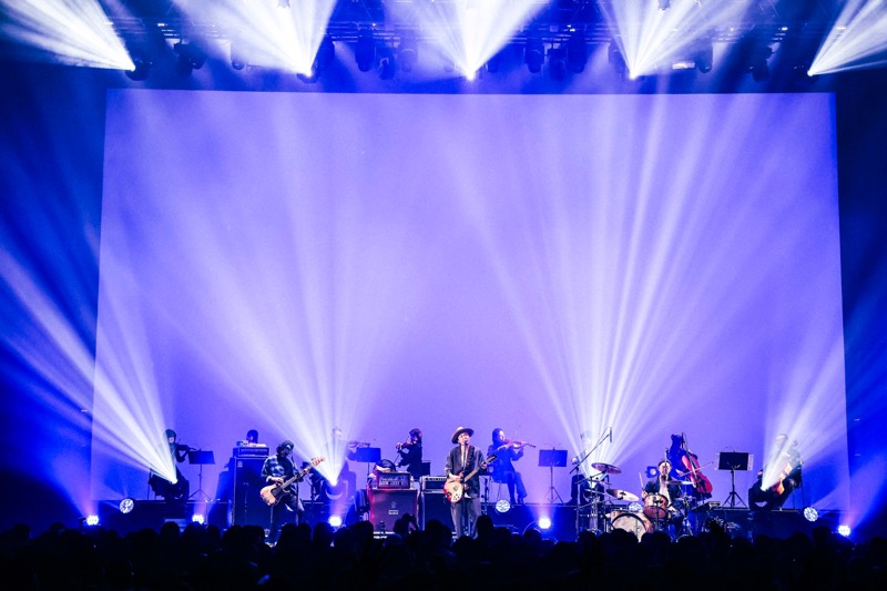 一悟の力強いドラムに続いて大木がコードを奏で始める、その瞬間に背後の幕が開き、弦楽八重奏団が姿を現した。大きなどよめきと歓声に包まれる観客席。「sonet」はドラマ版『ゴールデンカムイ』最終話エンディングテーマとして、小さな事象がやがて大きな現象を生み出す“バタフライエフェクト”をモチーフに書かれた1曲だ。レコーディングにも参加した四家卯大ストリングスの心強い助けを得て、ACIDMANならではのリズミックバラードの最新名曲を、心を込めて歌い上げる大木。かつてないほどに力強く人生を肯定する歌詞を締めくくる、“そこでまた笑い合おうぜ”という一節。大木の伝えたいことはずっと一緒だ。