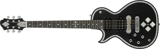 ピックアップはブラックのピックアップ・リングを用い、オープン・タイプのDragon Burstハムバッカーを2基搭載。コントロールは定評のあるCTSポットを使用し、各ピックアップ・ヴォリュームと各ピックアップ・トーンのレイアウト。スイッチクラフト製の3ウェイ・ピックアップ・セレクター・スイッチを備え、トーンのキャパシターはオレンジ・ドロップを使用。また、スイッチクラフト製のアウトプット・ジャックを使用し、ボディー・トップに配置。さらに信頼性の高いゴトー製のチューナーを使用。フィニッシュはラッカーを使用し、カラーはブラック。