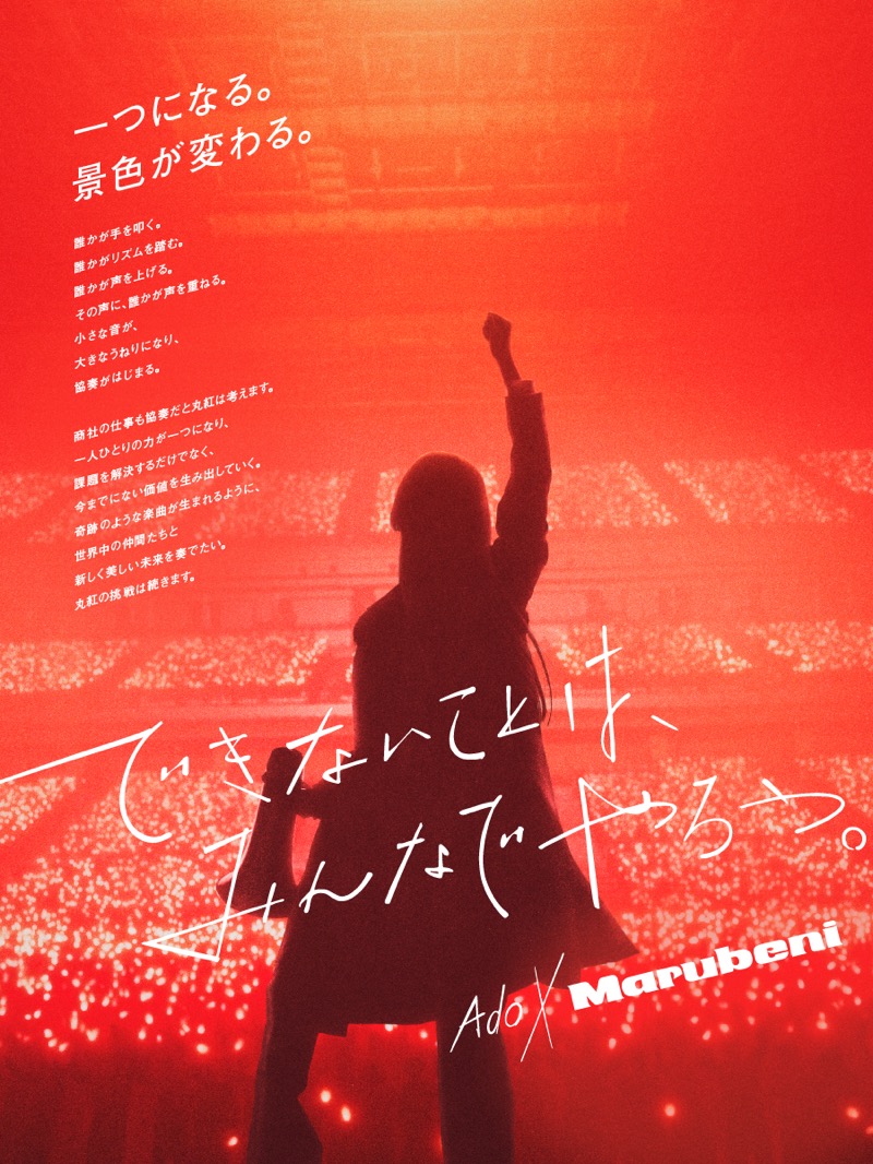 22歳の歌い手Adoが、“できないことは、みんなでやろう。”をスローガンとする丸紅の新企業広告に登場し、新曲「ロックスター」を初公開した。