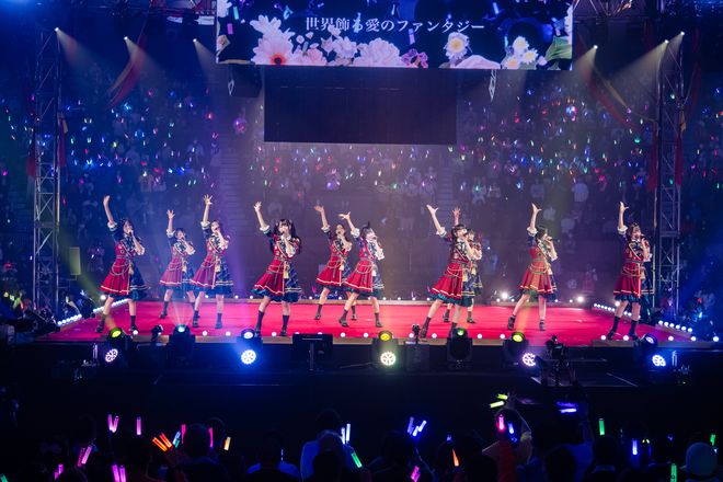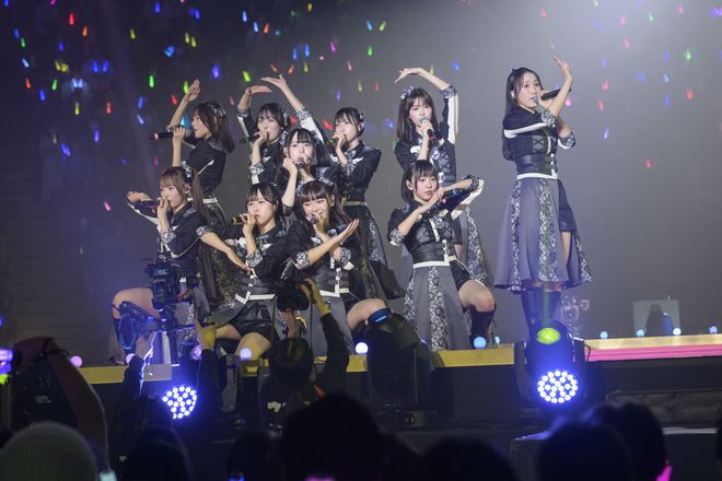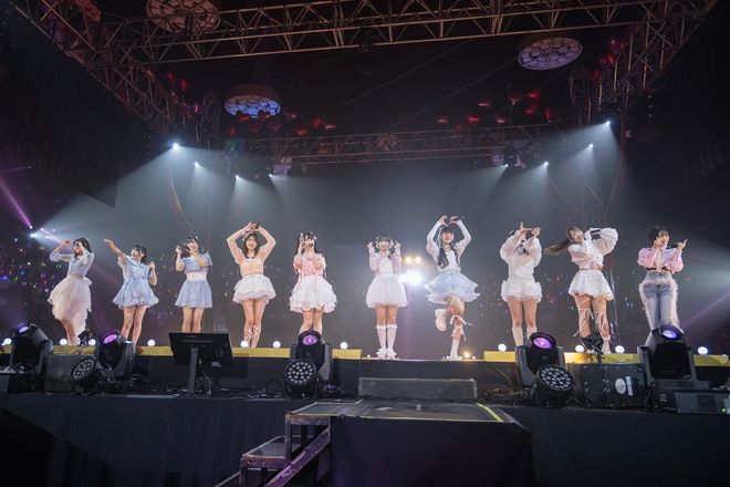 しばらくの余韻をおいて、アンコールでステージにスタンバイしたメンバーは、ピンクとクリーム色をベースにした新衣装を初お披露目する。「お嬢様風で、すごく可愛いんです」(松本)という清楚な新衣装で、同じく初披露の新曲「Cute for life」をパフォーマンス。エレクトロポップなラブソングでファンは再び甘美なライブ感に酔いしれた。